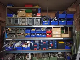 ich möchte mir einen Schweißtisch kaufen, der braucht natürlich Platz in der Werkstatt. Eine gute Gelegenheit mal auszusortieren und umzuräumen. Ein Pkw-Anhänger voll Schrott ist schon weg. Als nächstes kommen Kabel zum Recycler. Im Regal hab ich neu sortiert, oben ein kleines Regal aus Metallwinkeln und OSB-Plattenresten gebaut. Auf der 3. Lage fanden nun die ehem Weinkisten ihren Platz. Inhalt: Hydraulikteile, sauber sortiert, außen Schilder dran was drin ist, Griff kommt noch dran. Die Bosch L-Boxxen sind jetzt alle in einem Fach untergebracht.