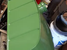 heute mittag war schön warm- was lag also näher als zu lackieren? Tank ist fast fertig, Tankträger teillackiert.. Die Motorhaube ist komplett grün