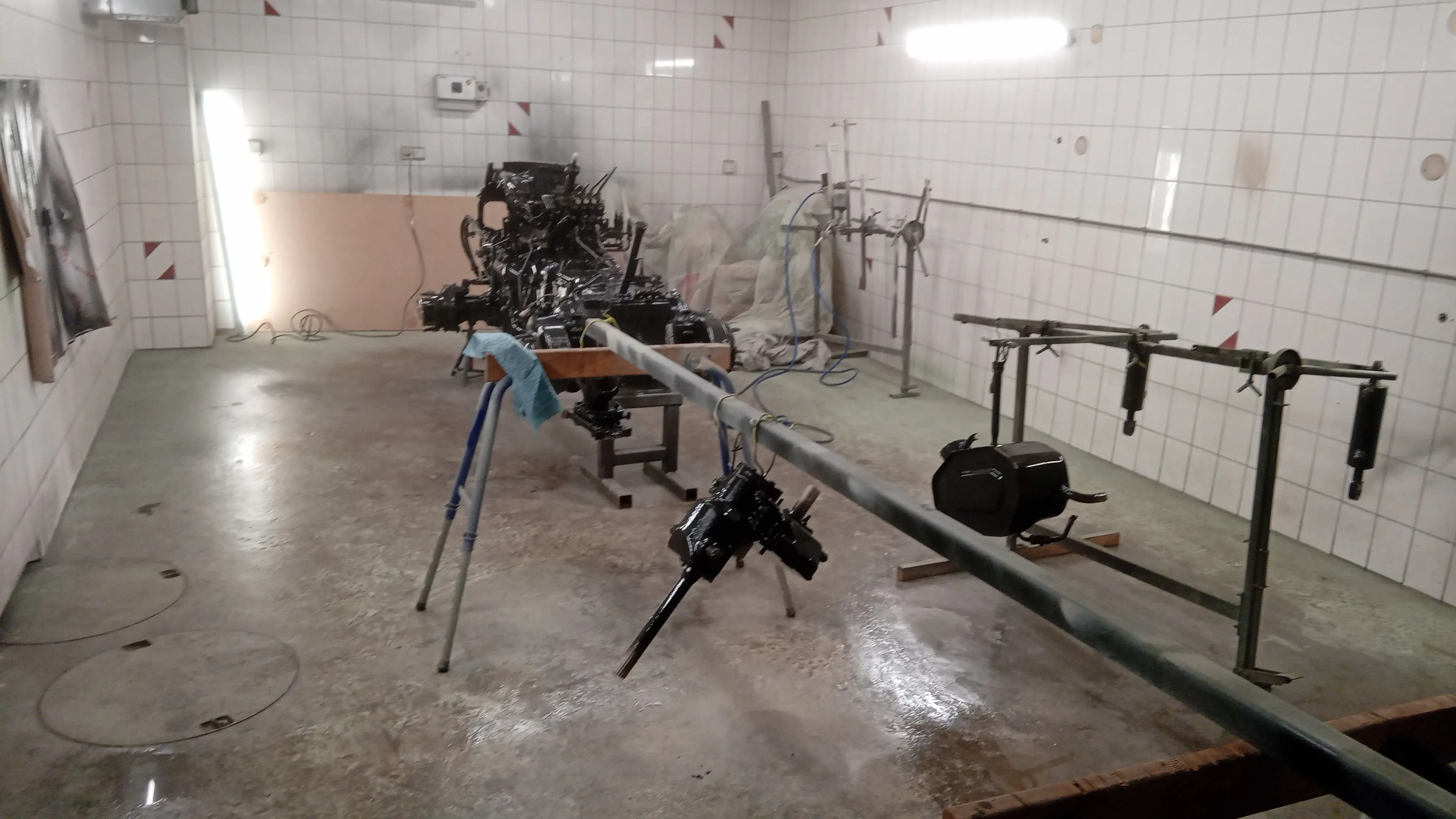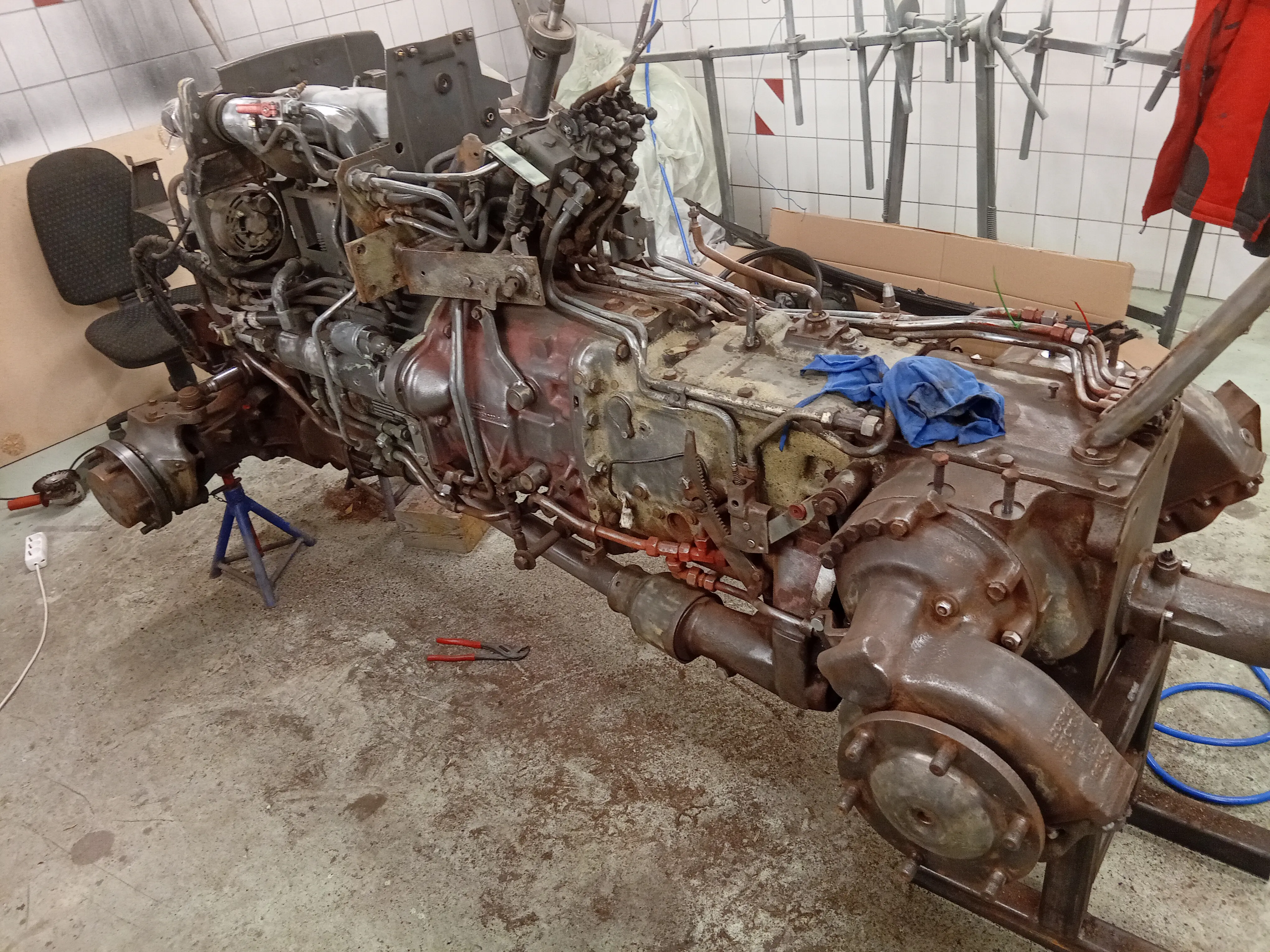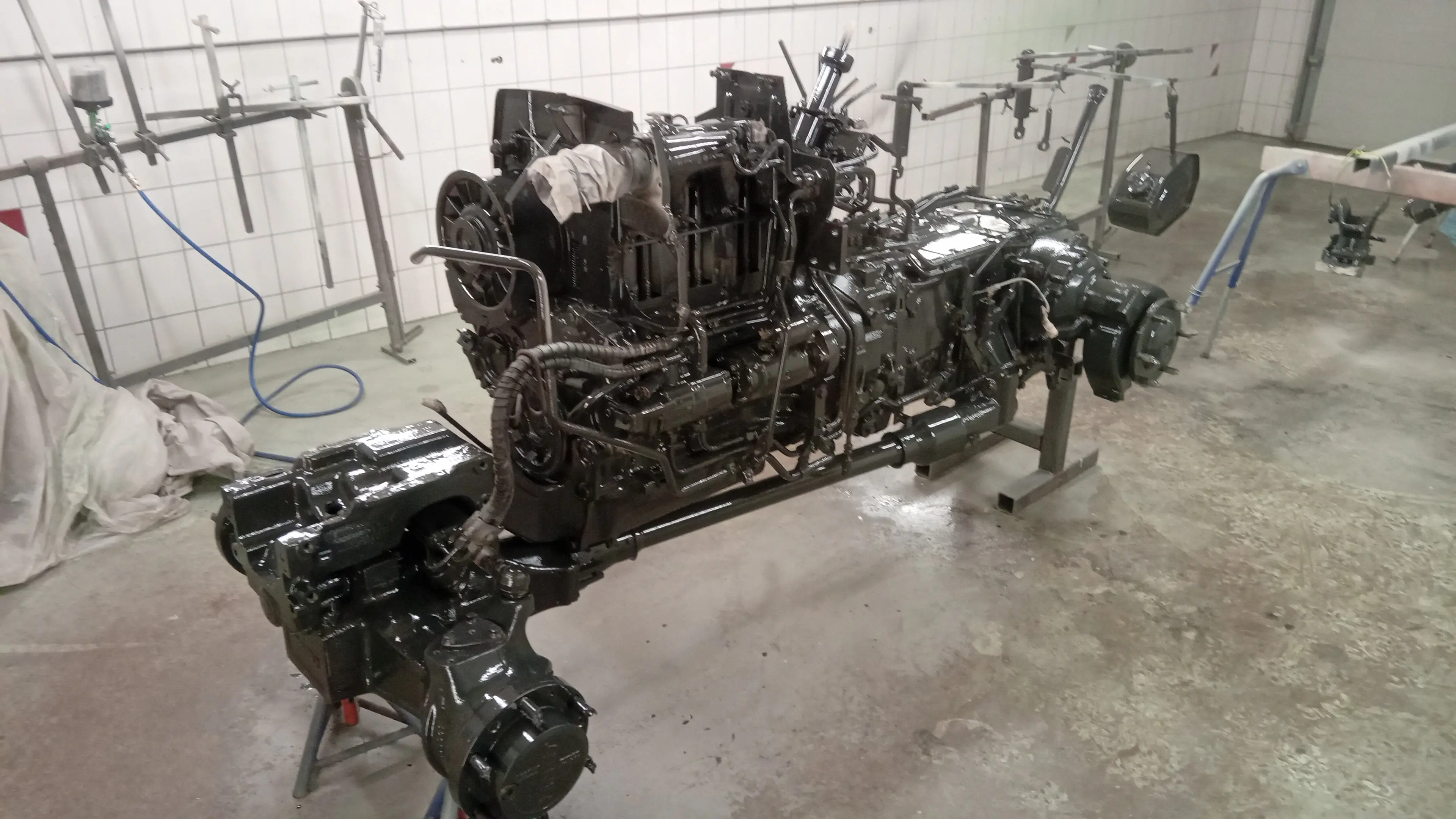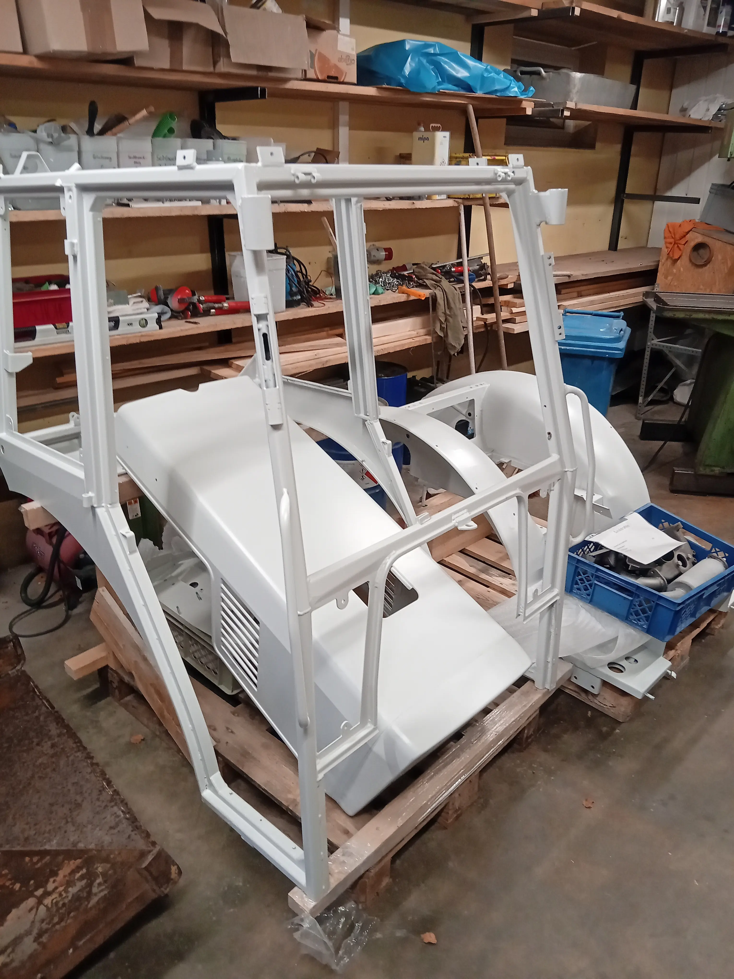 Kurzes Update nach meinem Urlaub hab ich nun alles soweit lackierfertig gemacht Kabine Unterbau etc.ist nun alles nochmals beim strahlen und Zinkgrundpulvern. Anschließend werden die sichtbaren Teile noch gespachtelt und nass lackiert. Die ganzen anderen Kleinteile werden ebenfalls gepulvert.