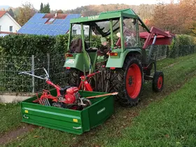 Die Heckmulde ist echt klasse. Hab mich schön da drauf gestellt und mit der Heckenschere von oben recht bequem die Hecken gestutzt. Ging noch nie besser. Und ist sicherer als mit einer Leiter zu hantieren. Meine Frau hat dann den ganzen Heckenschnitt durch den Häcksler gejagt den wir anfangs noch direkt in die Heckmulde gestellt hatten. Später haben wir noch unsere kleines Gärtchen mit der Honda umgepflügt und zum Schluss musste natürlich noch das Häckselgut auf den Komposthaufen gefahren werden. Letzter Akt, alle Maschine mussten wieder zurück zu Vadder und das haben wir natürlich auch wieder mit der Heckmulde gemacht.