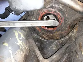 Mit einem Reifen-Montiereisen habe ich den alten Simmering herausgehebelt.