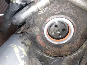 die Lauffläche der Nabe war noch ok, ich habe sie mit Vlies glatt geschliffen. Danach wurde der Kühler und die Batterie wieder eingebaut und frisches Kühlwasser eingefüllt. Die ganze Aktion hat ca. 3 Std. gedauert.