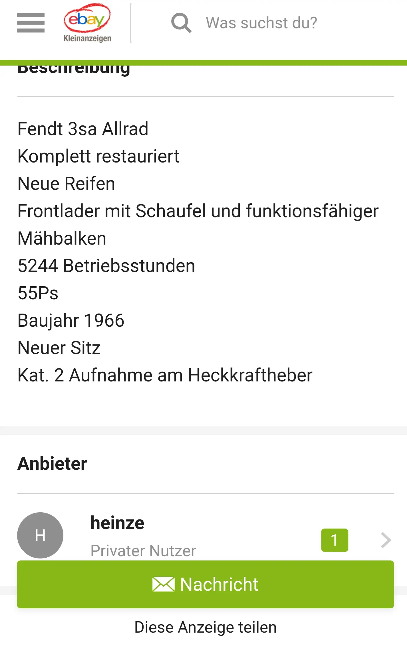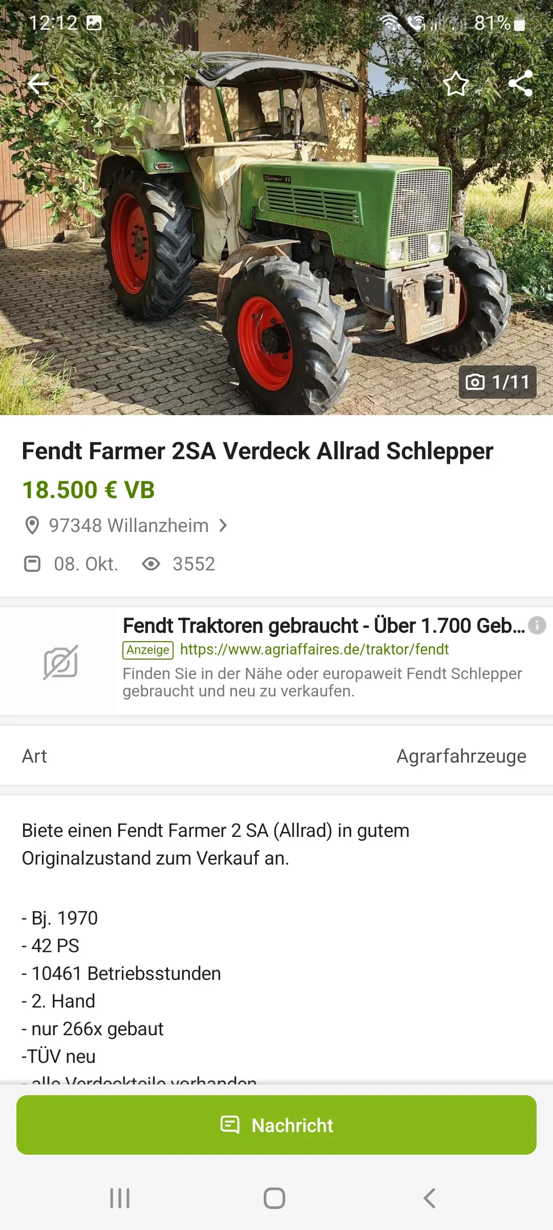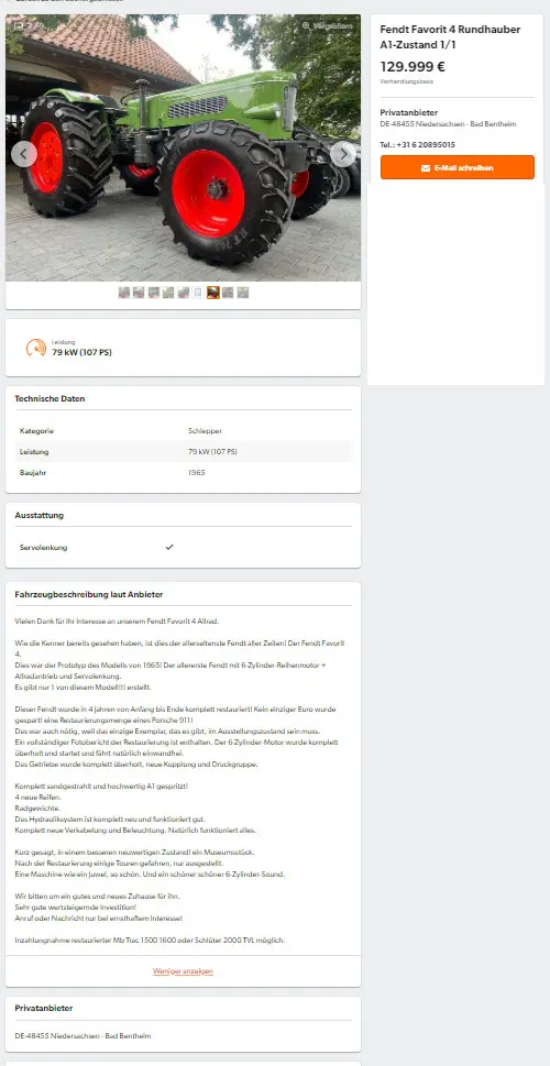 Ich finde den Farmer eigentlich nix schlechter als den Favoriten. Kenner wissen den Unterschied. Vielleicht hatte er auch beim Angebot falsche Daten eingetragen. Das ist ein Bild von Schlepper, allerdings 20000 zu hoch im Preis.
