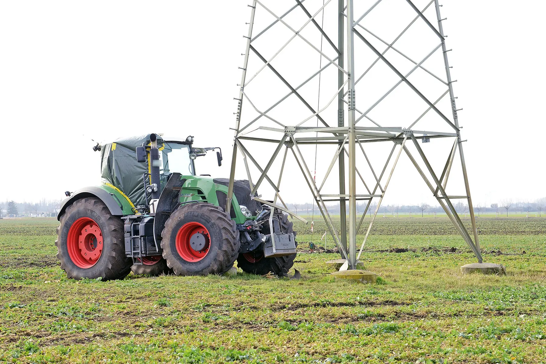 Der Traktor war am Mittwoch bei Wulfen auf freiem Feld gegen einen Hochspannungsmast geprallt. Der Fahrer hatte den Strommast offenbar erst bemerkt, nachdem er hinein gefahren war. Aufgrund des Aufpralls drohte der tonnenschwere Koloss auf den Traktor zu stürzen."