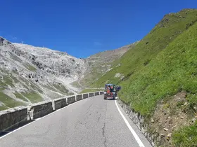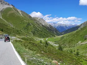 In Landeck kam für uns ein kurzer Schock: Reschenstraße komplett gesperrt, Umleitung über den Fließer Tunnel, dieser ist als Autobahn eingestuft. Nach einer hilflosen Extrarunde am Kreisverkehr kam uns ein netter Einheimischer zu Hilfe und verriet uns den Schleichweg der Einheimischen. Ohne seine Hilfe hätten wir wahrscheinlich zurück nach Imst, dann ins Pitztal und über die Piller Höhe nach Fließ fahren müssen, was einen Umweg von mindestens 3 Stunden bedeutet hätte.