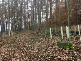 Einen Teil der Schwarznüsse habe ich mit Hüllen geschützt, einen Teil mit Drahthosen. Ich bin gespannt wie es sich entwickelt. Grundsätzlich wird ja bei Laubholz zu den Hüllen geraten. Allerdings bin ich mir bei Schwarznuss nicht so sicher, ob das wirklich von großem Erfolg geprägt sein wird - immerhin entwickelt sie ja, ähnlich der Walnuss, mächtig Laub, was z.B. bei der Eiche nicht so ausgeprägt und groß ist. Mal gucken wie es wird ...