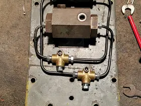 Du kannst die große Verschlussschraube oben am Regelsteuergerät verwenden. Nur so ist sichergestellt, dass der Rücklauf über die Schmierung läuft.